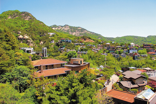 Tại Hàn Quốc, rất nhiều chính trị gia, doanh nhân, nghệ sĩ mua biệt thự sống biệt lập ở khu chân núi, nơi có những con đường thênh thang và cây xanh phủ bóng khắp nơi.