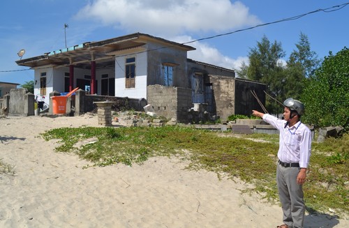 Hộ ông Dương Tào ở xã Quảng Ngạn chỉ cách bờ biển vài chục mét vẫn chưa thể di dời.